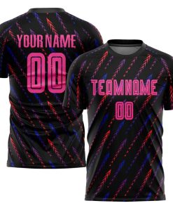 Benutzerdefinierte schwarz rosa-orange Sublimation Fußball Uniform Trikot